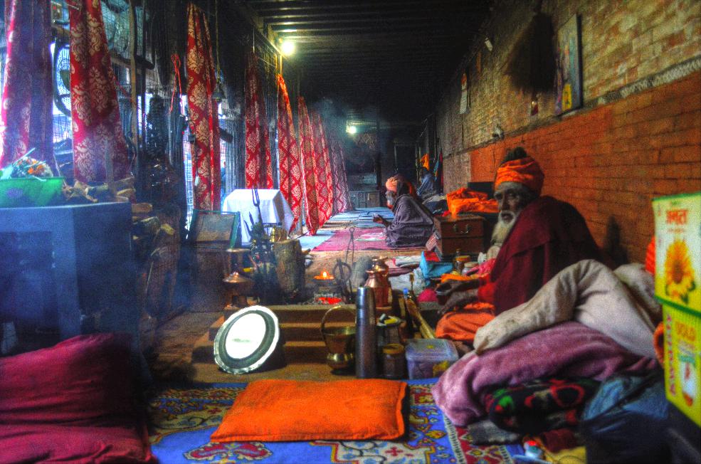 I wandered into one area that was considered a yoga school, where I found many monks drinking tea and camping out. The monks there all wore a saffron colored cloth, and sat on small cushions. I found one area where there was a fire burning with several logs, and I come to find out the fire was burning for the past 13 years. I wanted to find the oldest fire in the complex, and was directed to the Annapurna temple across the street and near the entranceway where I originally entered the complex. I was told the fire there had been burning continuously for the previous 40 years. Annapurna means “food goddess” and once I arrived at the temple I see many monks sitting around the fire, tending to the embers of the burning logs. I gave my obesiences and sat with these monks and the embers for some time. The passion of a fire that continuously burned for forty years enchanted me. I was entranced by the meditation on the sacred flame and the symbolism, ruminating on the teachings of the ancient flame. Just recently, I was reminded of a couple I had known for a long time, they have been married for forty five years already, in what was an arranged marriage. The fire here reminded me of that sort of dedication. Unfortunately, I was unable to meet the swami who was the main teacher of the temple. He was out and about and I had missed him. I stayed for the evening aarati and chanting, then the final prasadam. I sat with the monks for a while and ate the prasadam, which was really very tasty. I felt fortunate to have come to this place and witnessed the culture from such a deep place. I was touched and the experience brought me closer to the meaning of Shiva, and his practices.