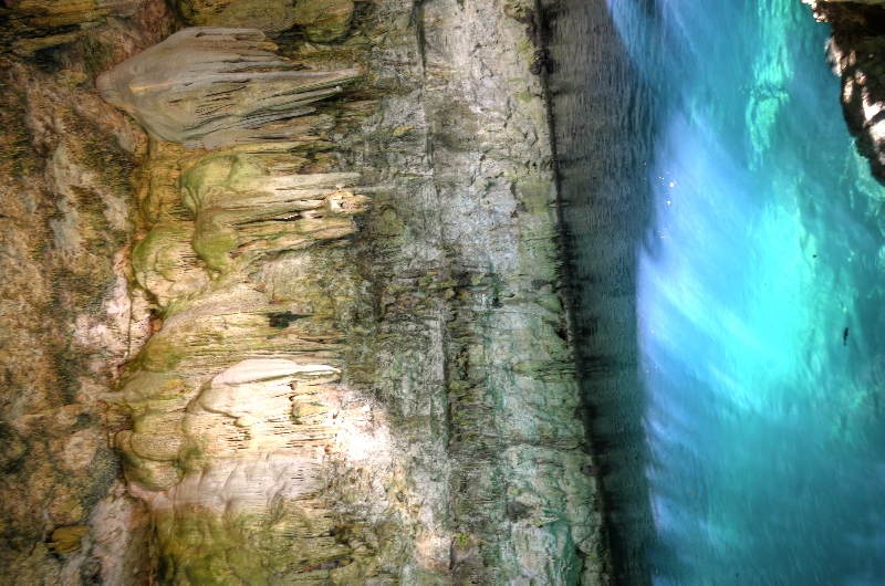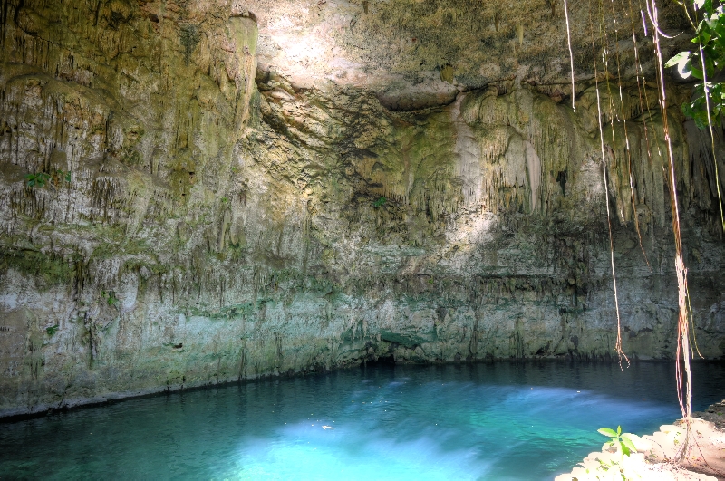 Mexico's aquifer system is unique and exciting because of its topography. There are so many cave swimming holes where you can snorkel into the caves. I'm not brave enough to try cave scuba diving, although many people here do that. The cave system is much more open and large than in Florida allowing for numerous long dives between the cenotes. It's incredible. At Parque Dos Ojos we swam into several large cave chambers and one of them was completely enclosed and had an opening where bats would fly in and out. There were 4k bats inside the cave. It was nice to swim into the caves and see the bats. Seeing the underwater caves is also amazing because the visibility in the cenotes is so clear and the water is so fresh. They gave us flashlights as part of tour and we could see further into the cave. It all comes from rainwater apparently, so the water is crystal clear like in the photos. You can see everything very visibly. There were no obstructions. I was amazed by the caves underwater because the chambers are so huge. There were large stalagmites and its really awe inspiring. I also went to a few other very interesting cenotes that were very picturesque and beautiful. The cenote Nichte Ha was one such cenote where the photographs were incredible and the underwater scene was also amazing. There were many large fish swimming around and it seems the habitat is well maintained for the lotuses and scenery to be beautiful. Although many people visit there to take a dip it seems as though the cenote itself was very alive. There was also a large cave opening to swim into as well and some divers came up from within the cave at one point. Peering into the depts of the cave system was really amazing. I was surprised how far I could see without a flashlight.Â