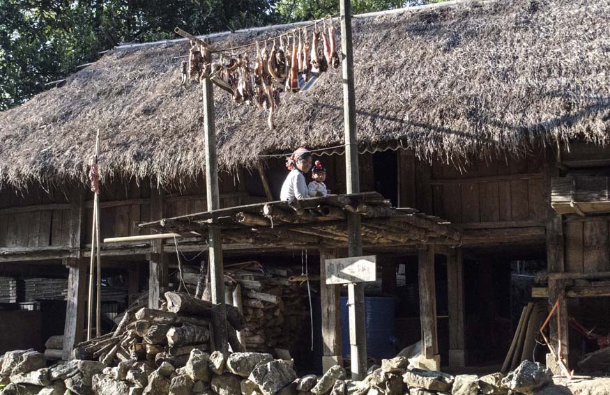 Yesterday was raining, and today we didn't go out until after lunchtime. Fortunately two groups of over 10 people came to lunch each day. I've become the Jiangxi gourmand, eating at the small hotel/restaurant where I'm staying. The feasts have a lot of different dishes/flavors. One of my favorites is the soaked wild bamboo, which becomes tender with a slight crunch, or the wild mushrooms which are harvested from the mountainside then sauteed in oil with green onions. Most of their meat dishes are full of red and green peppers. The ham slices have a huge portion of fat on one end, with a slight bit of tough dried meat on the other end. Usually they make a plate of sauteed greens as well as a large pot of rice. I notice that they use most of the animal parts. Their chicken soup has chunks of meat cut off with the bones still inside, with the head sitting in the soup pot as well, which most times I see people eating with no problem. I've been offered dishes with only the intestines of the chicken, which are then covered in an oil and red peppers. Pig feet, with their tendons and ligaments cooked down to a softer pliable form. It's common to eat a dish of julliene potatoes which are then sauteed with a bit of green onion. Eating liver is a common dish of course covered with red peppers and oil. For breakfast, lunch and dinner, we're usually huddled inside the kitchen area that uses a woodfire wok, and a hanging cauldron. The rice usually cooks in the cauldron, afterwards a plate of slices of pork will be kept warm. The daily burning of the wood keeps us warm, and keep the drying pig meats on the rack above properly smoked. The dry hot air from the fire fills the small room and covers the inside of the building with a thick black charcoal.
